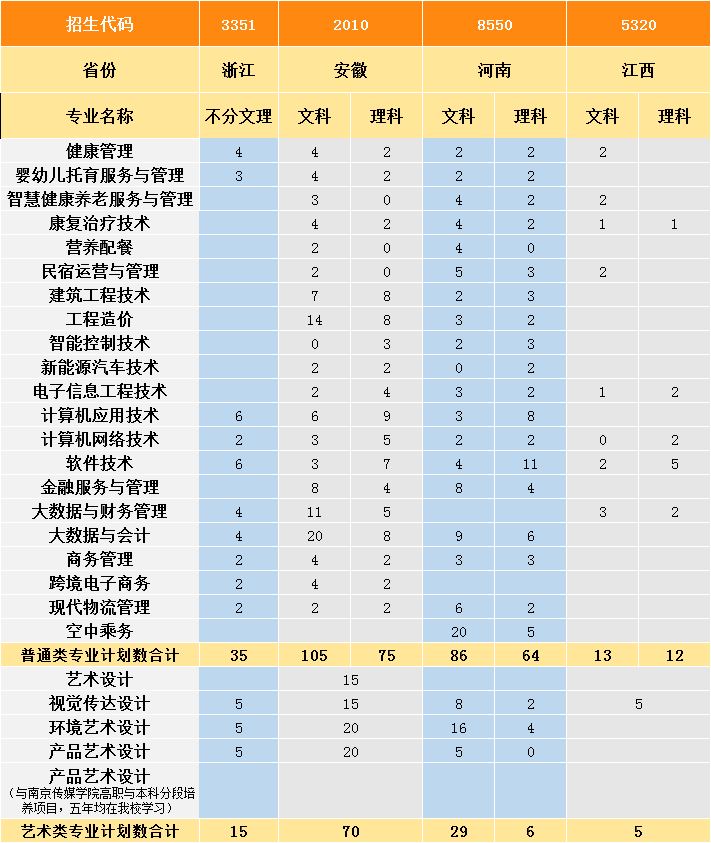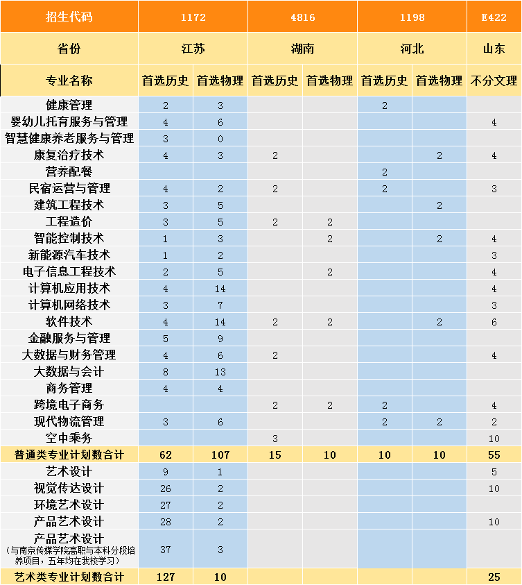 2021年高考阶段分省分专业计划一览表