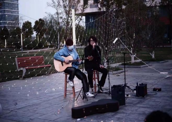 4月4日晚上,吉他社、无名音乐社组织开展了草坪音乐会。来自全校的近20名同学参与演唱,观众们席地而坐,跟着乐队一起歌唱,唱出了春天,也唱出了青春。
