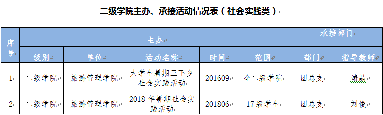旅游管理学院主办、承接活动情况表(社会实践类)