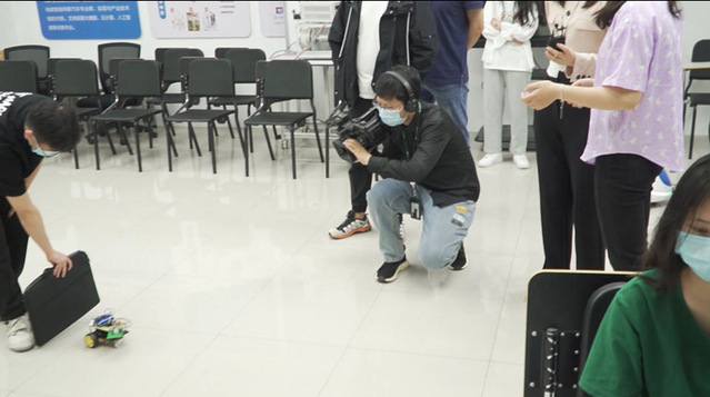 活动当天,智能工程学院社团同学在镜头前展示并讲解了现代科技如何与教学相融合的过程,并动手示范了迎宾机器人、避障机器人的功能,还通过修改技术参数等手段使得机器人具备不同的功能,让学生对科技创新有更高一层次地了解与认识,感受创新魅力,和学生一起探讨,讲述科技创新的重要性!